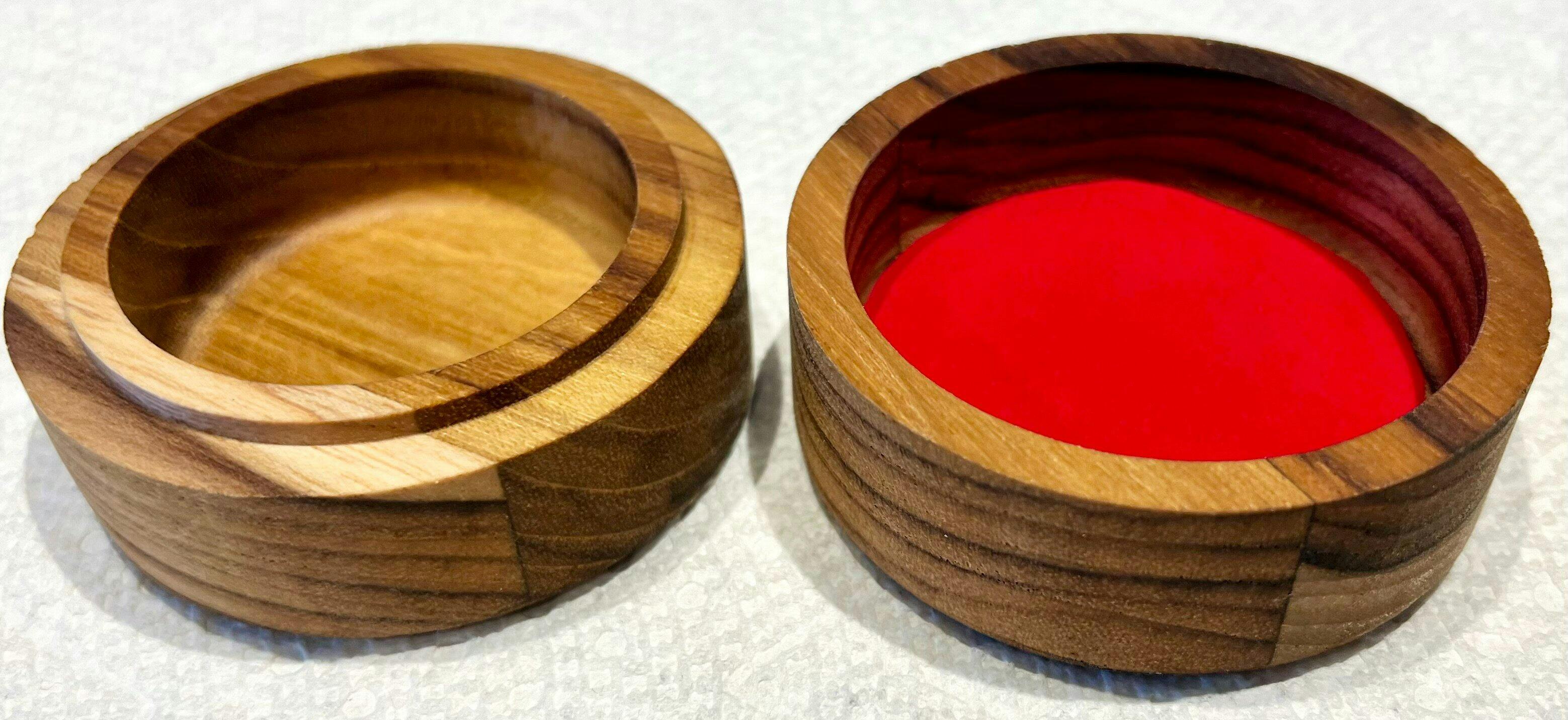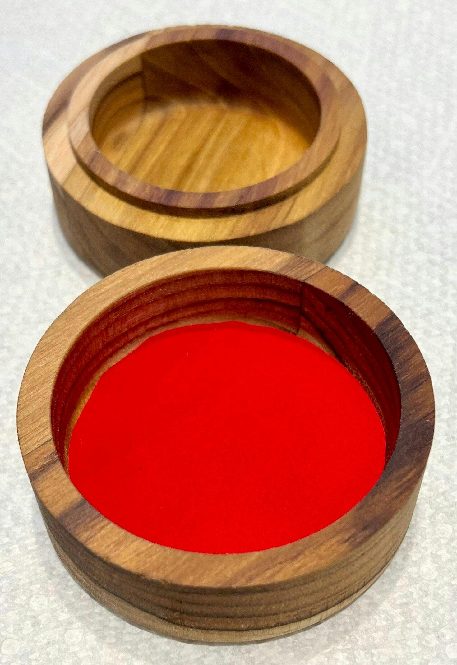A round jewellery box that blends elegance with practicality. Its compact size makes it perfect for storing rings, earrings, or small keepsakes. A thoughtful gift or craft show piece, it adds charm to any dresser or display.